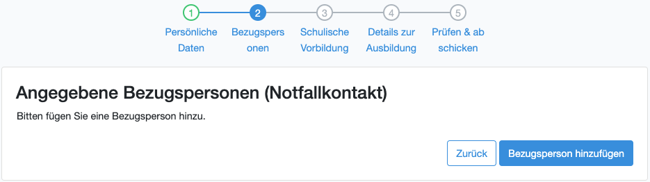Beachten Sie im zweiten Schritt, dass immer mindestens eine Bezugsperson angegeben werden muss: