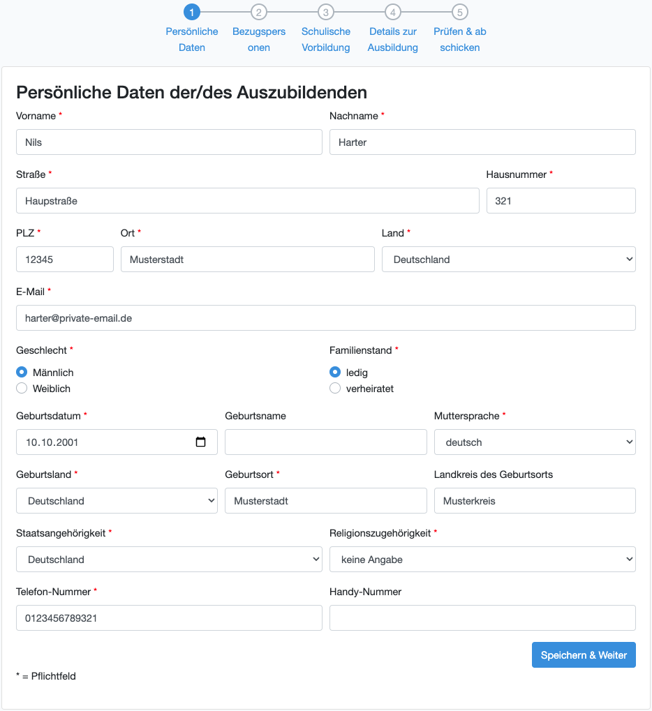 Persönliche Informationen der/des Auszubildenden:- Vor- und Nachname