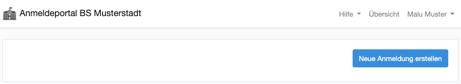Um eine neue Anmeldung zu erstellen, klicken Sie auf der Übersicht auf die Schaltfläche „Neue Anmeldung erstellen“.