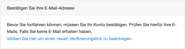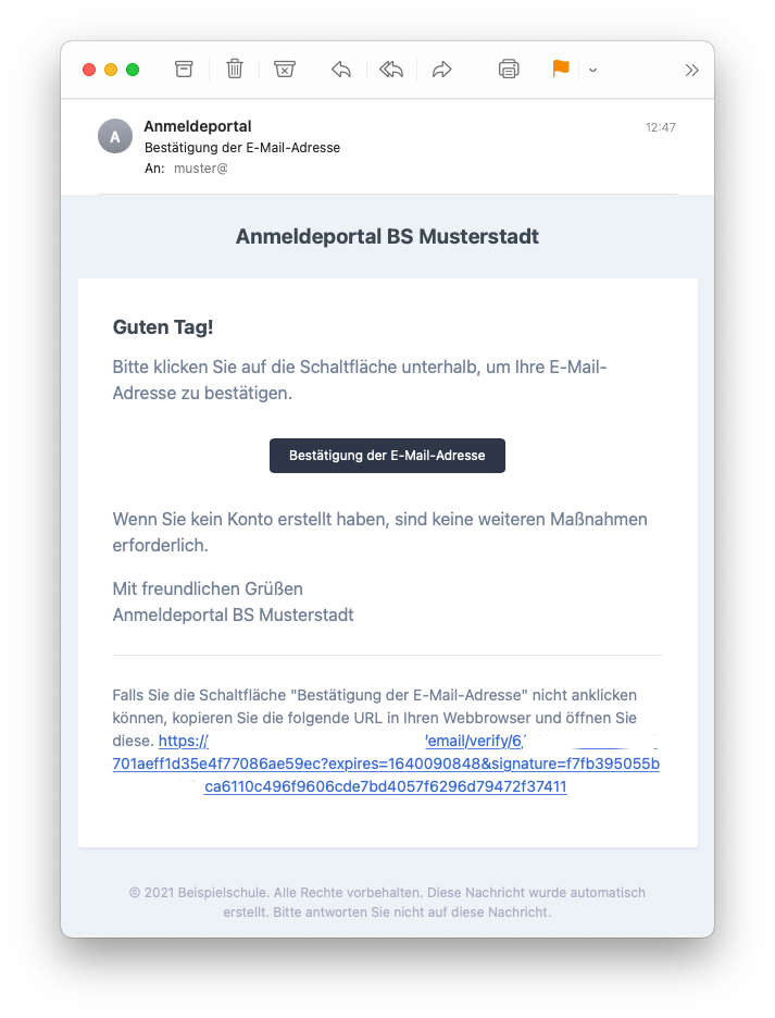 Die E-Mail sollte innerhalb von wenigen Minuten Ihnen zugestellt werden. In der E-Mail klicken Sie auf die Schaltfläche "Bestätigung der E-Mail-Adresse".